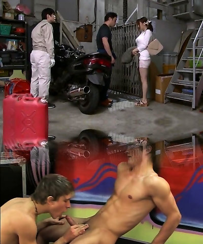 Sexy Busty Japanese Mother Gets Fucked By Multiple Men In A Desk Chair