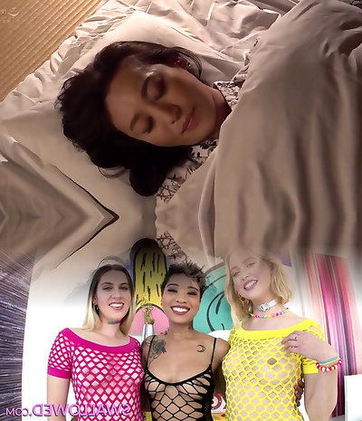 Double Penetration: Two Asian Chicks Fuck Their Step Fantasy's Huge Cock