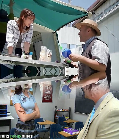 Wet and Horny Japanese Librarian Gets Nailed by Two Older Men!