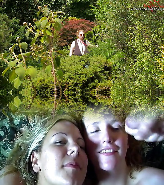 Ambling sans bra in city garden