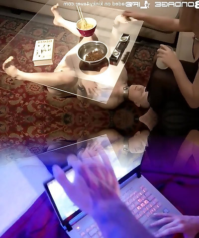 A Busty MILF Gets Fucked by Her Sexy Asian Slave on the Coffee Table