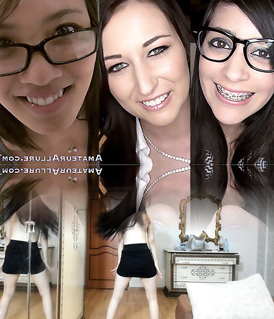 Three Busty Beauties in Glasses Get Fucked and Cum All Over Each Other!
