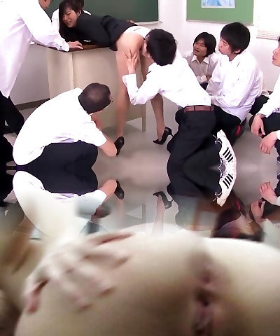 Horny Asian Brunette Mrs. Sensei Gets Group Sex with Cocky Students